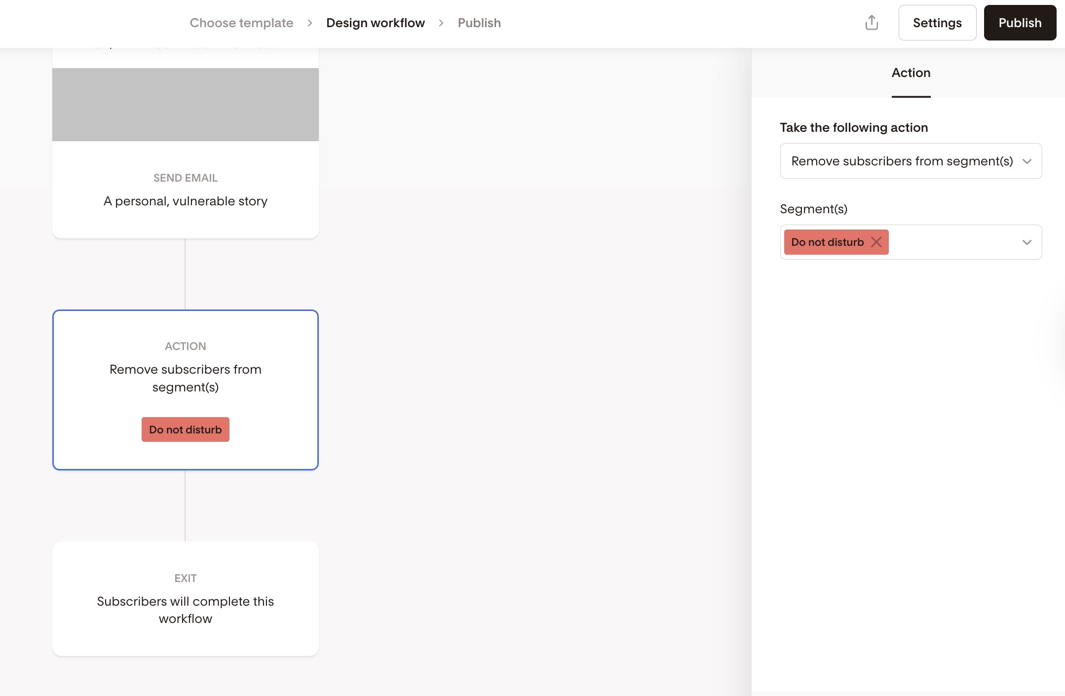 Step 3: Remove subscribers from the segment at the end of the workflow