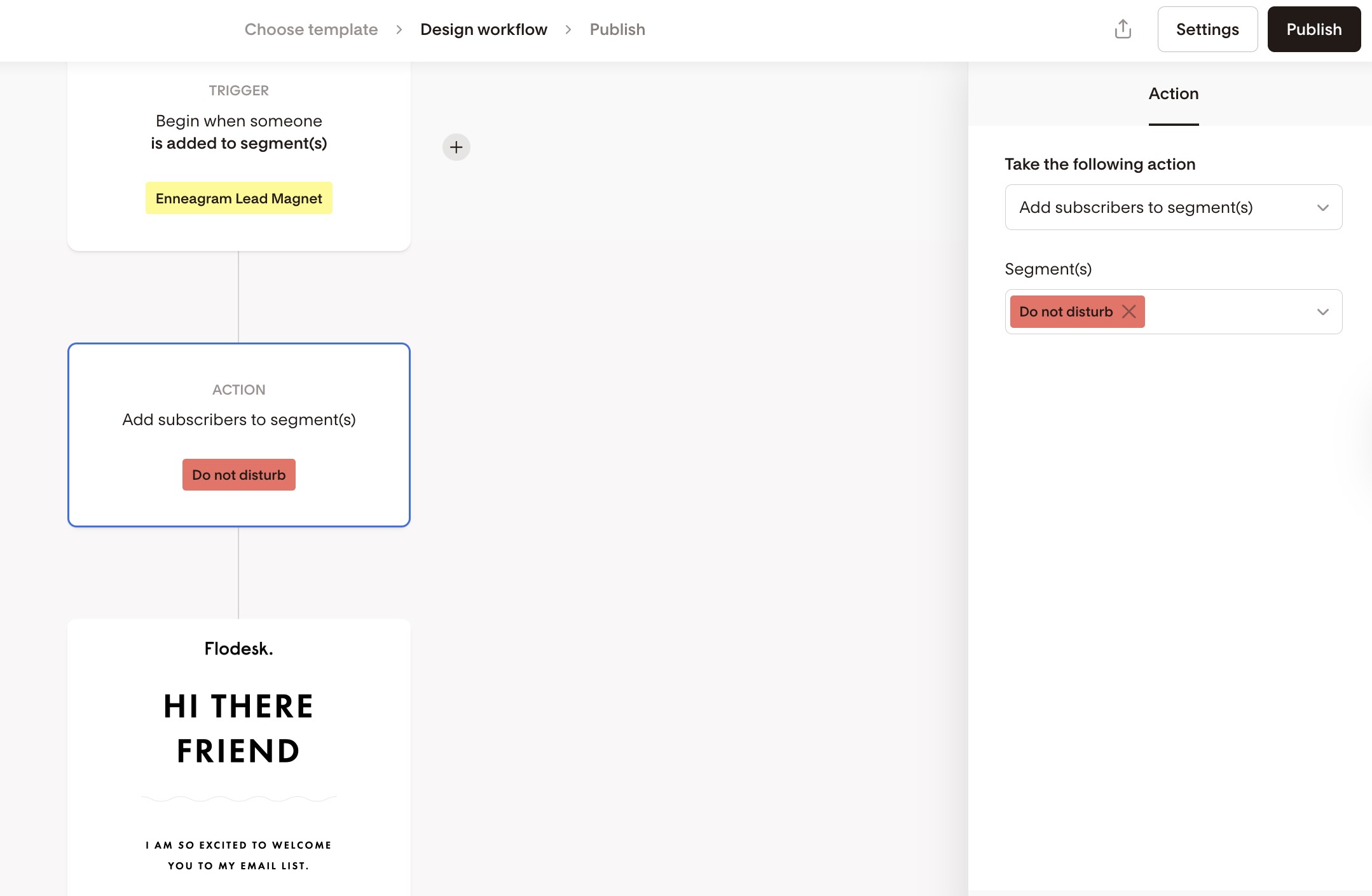 Add an action that adds the subscriber to the “Do not disturb” segment