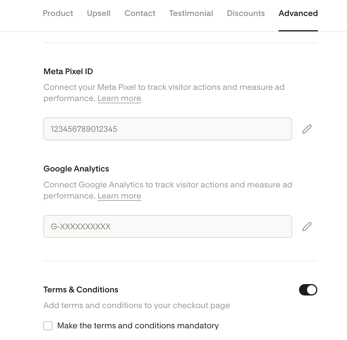 Add a Google Analytics measurement ID to your form (Full page or Link in Bio) or checkout