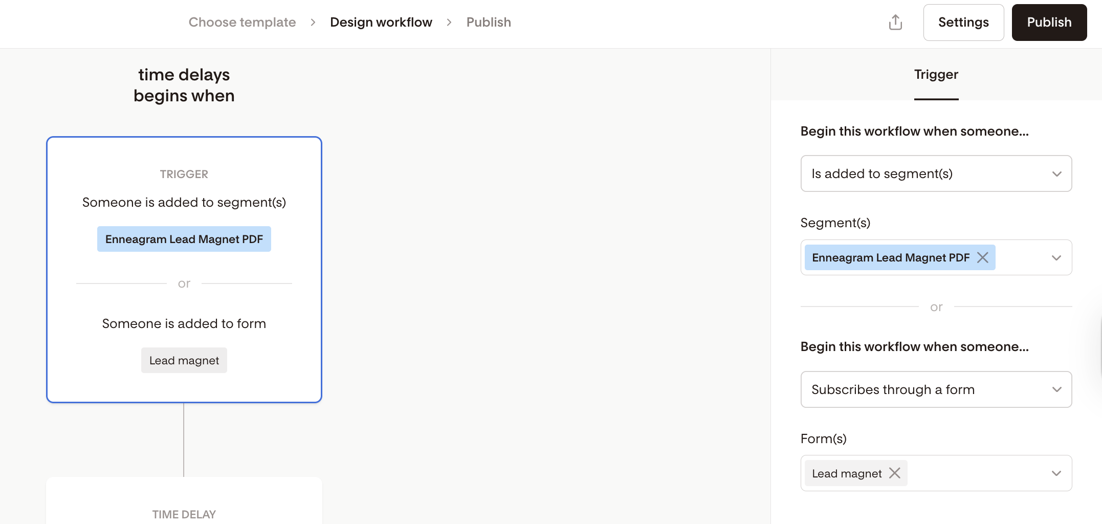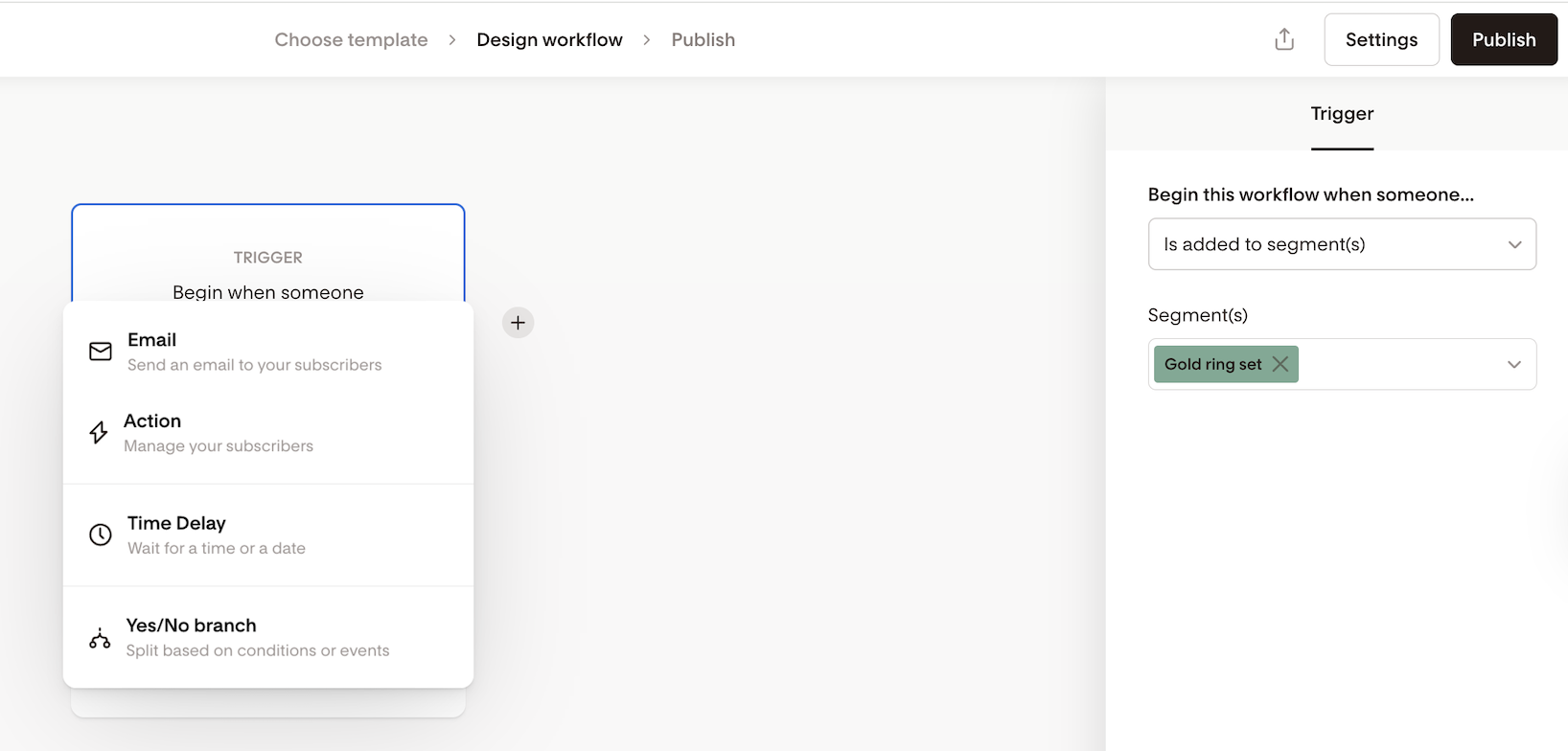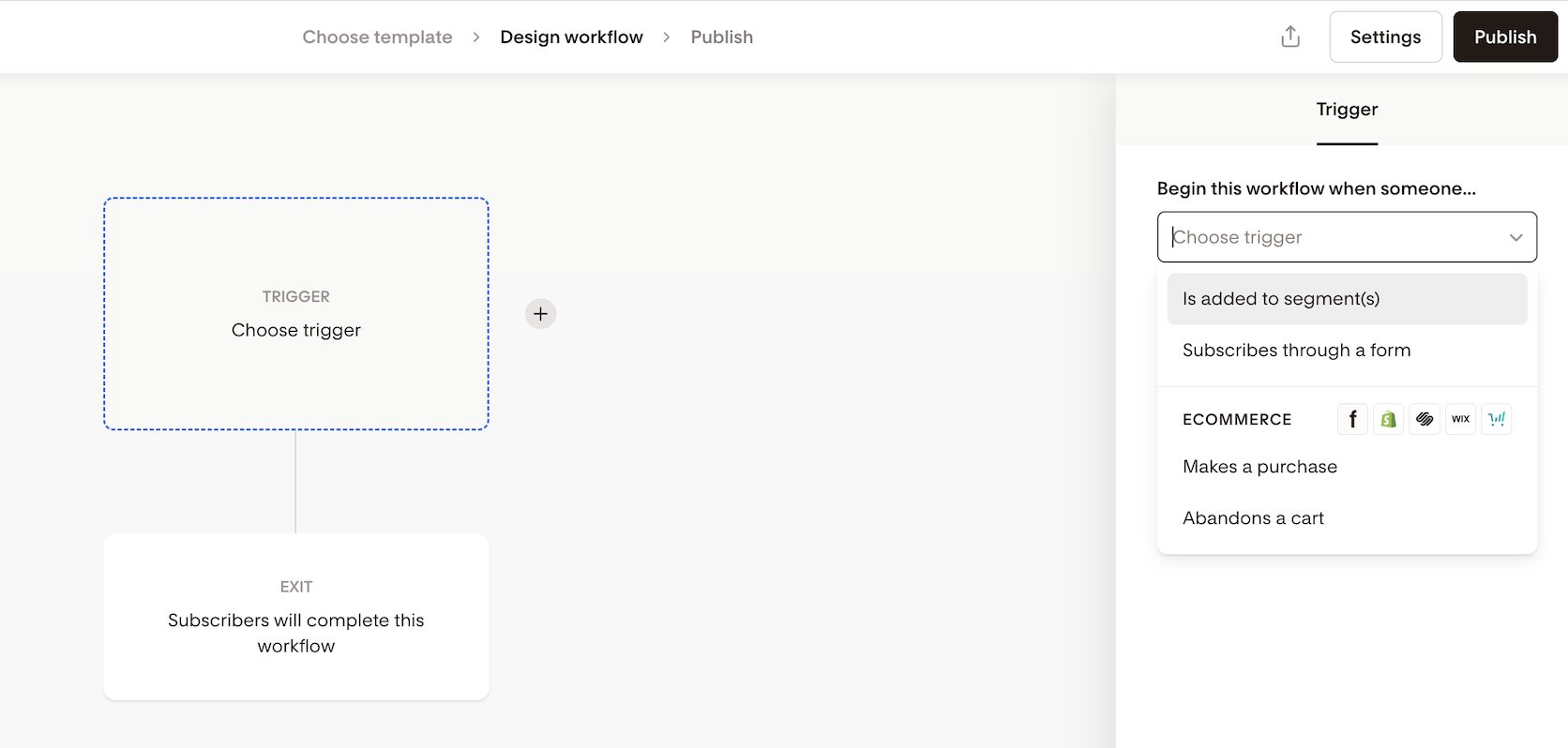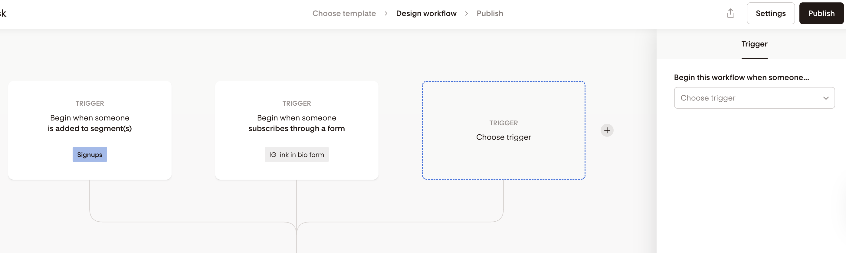 Every workflow begins with a trigger—this is what tells Flodesk “Start the journey!”