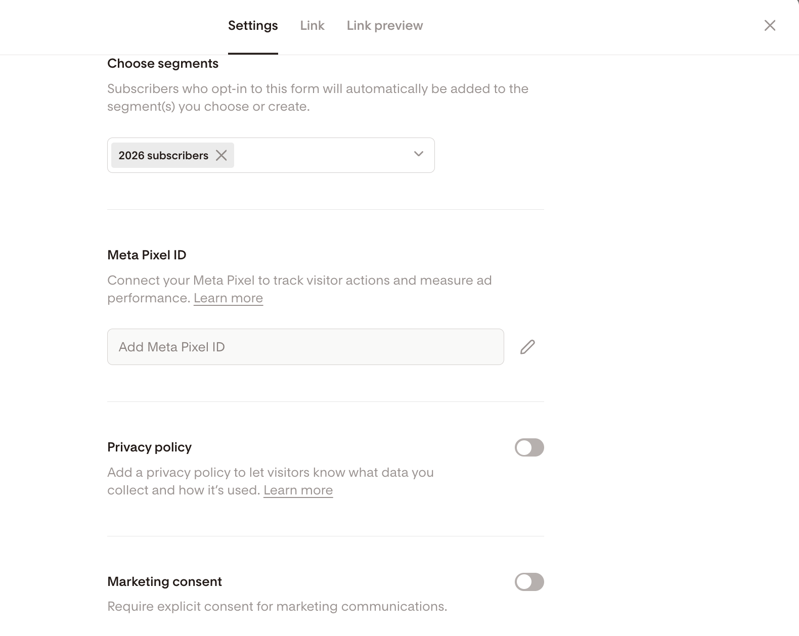 Yes. You can edit your form link and preview settings from the Link tab.