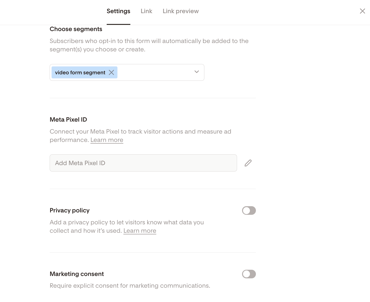 Under the Link preview section, you can change what people see when your Flodesk form link appears on social media, messengers, or search engines.
