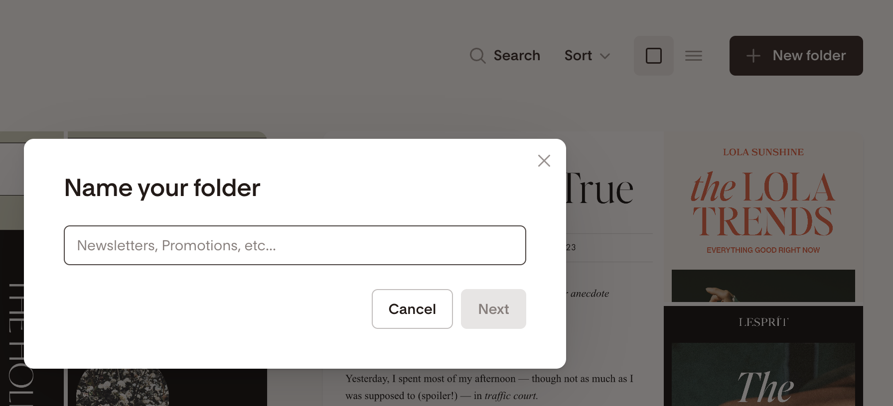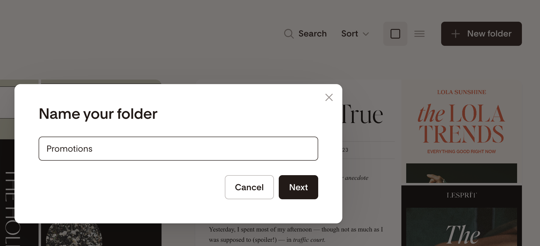 Give your folder a name, then select the content you'd like to add to it (or skip this step and add content later)