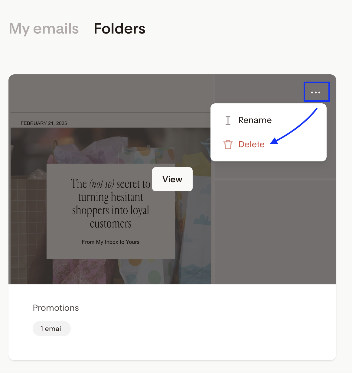 Each section of Flodesk (Emails, Forms, Workflows, and Checkout) has its own Folders tab, so you can keep everything tidy without losing track of anything. Content that isn't in a folder is still accessible from the main listing page at any time.