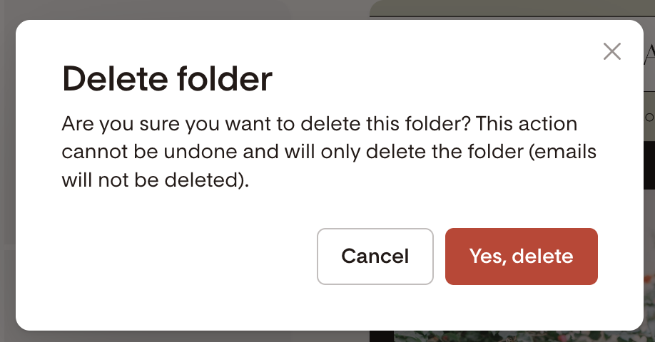 No. Deleting a folder only removes the folder itself. Your content stays in your account and remains accessible from the main listing page. Flodesk will show a warning before you delete, so there are no surprises.