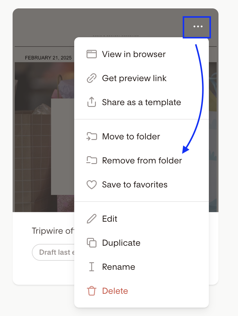 Click the three-dot menu (...) and select Remove from folder (this action only appears for items that are already in a folder)