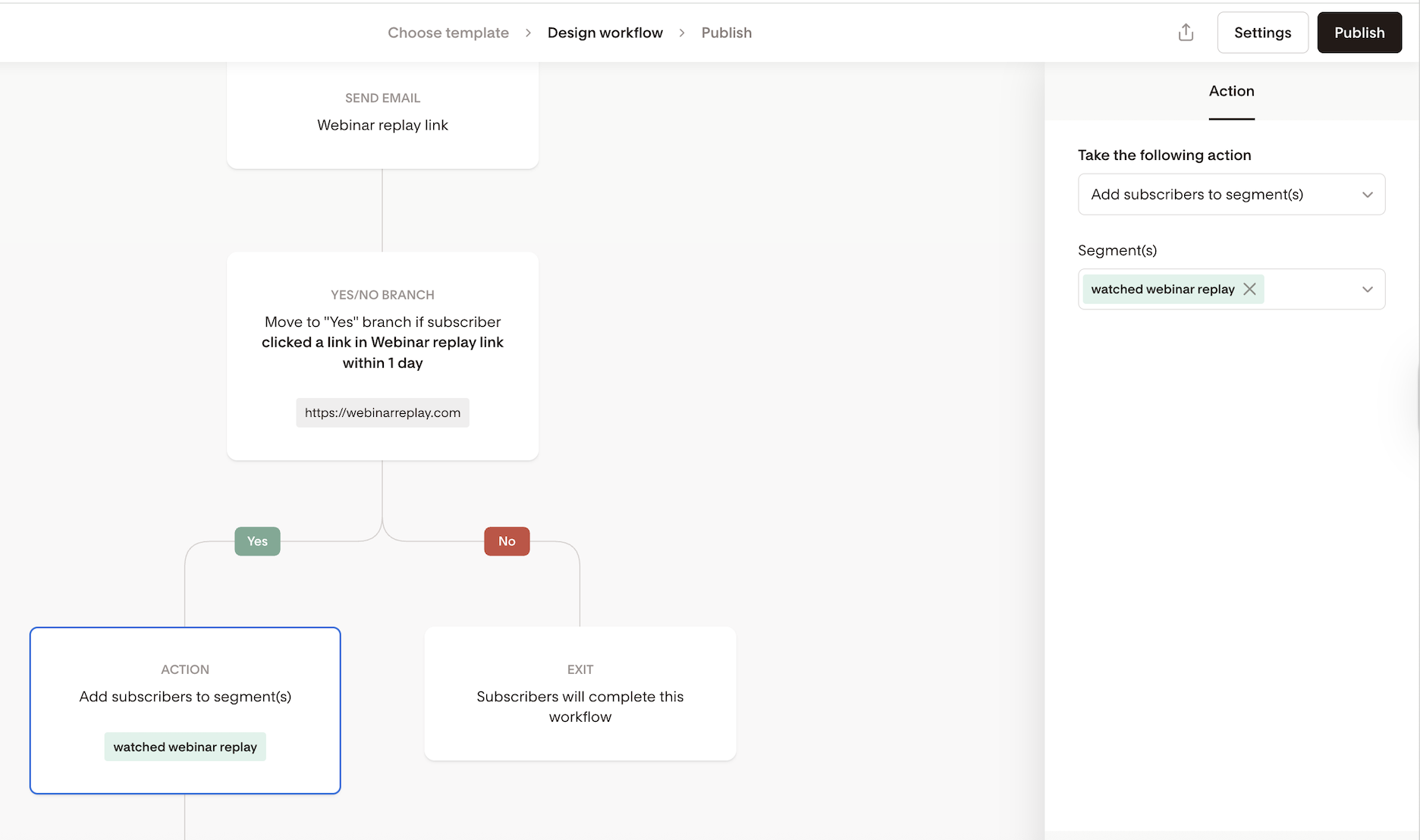 Add subscribers to segment(s) → “Watched webinar replay”