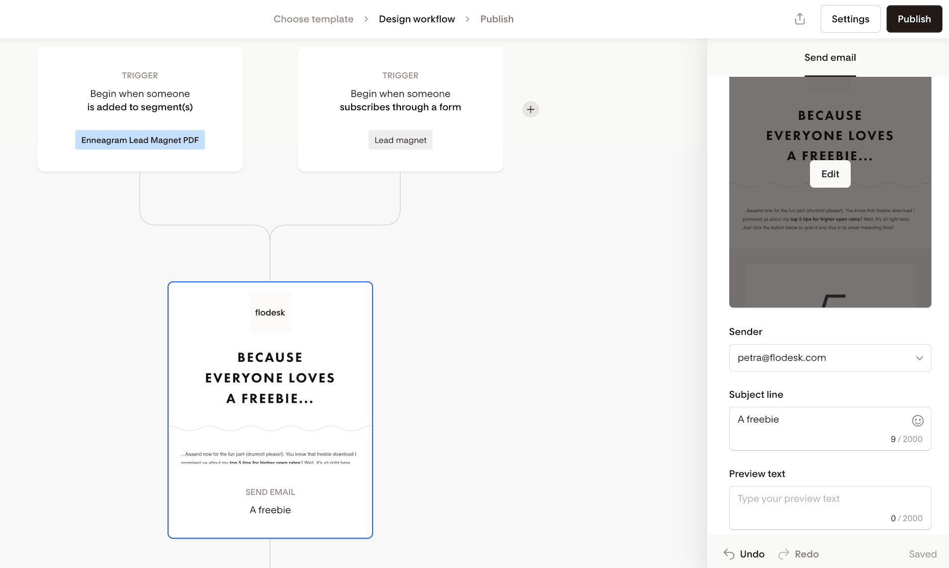 Automatically deliver your freebie to new subscribers using a form, segment, and workflow in Flodesk.