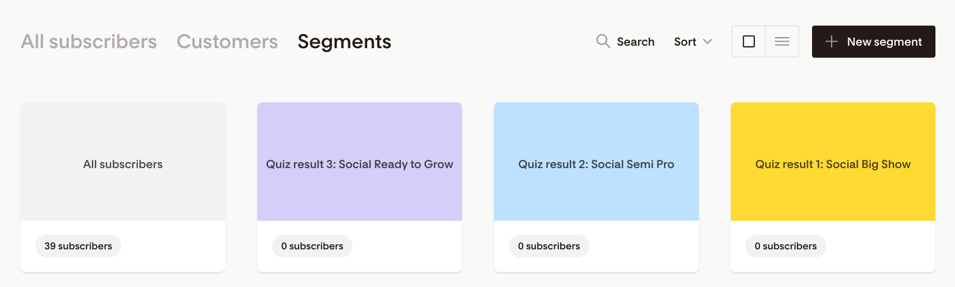Option 2: Add respondents to different segments based on their quiz result (good for sending targeted follow-ups based on their answers)