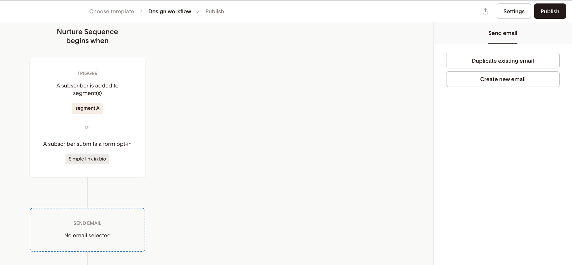 Use a workflow to automatically send a welcome email when someone joins your audience. This is the best option if you want every new subscriber to receive the same welcome message without having to send it manually.