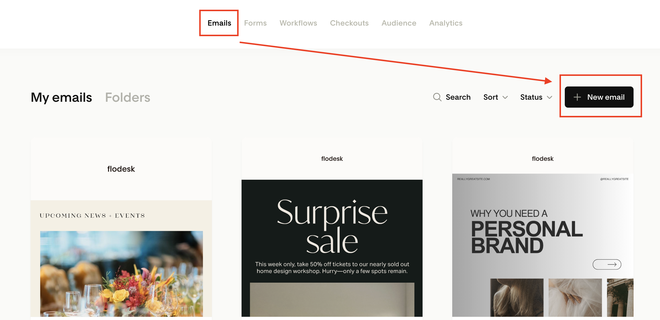 Step 1. Click create +New email.