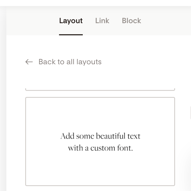 Font options change based on whether you’re editing a plain Text block or a Layout block.