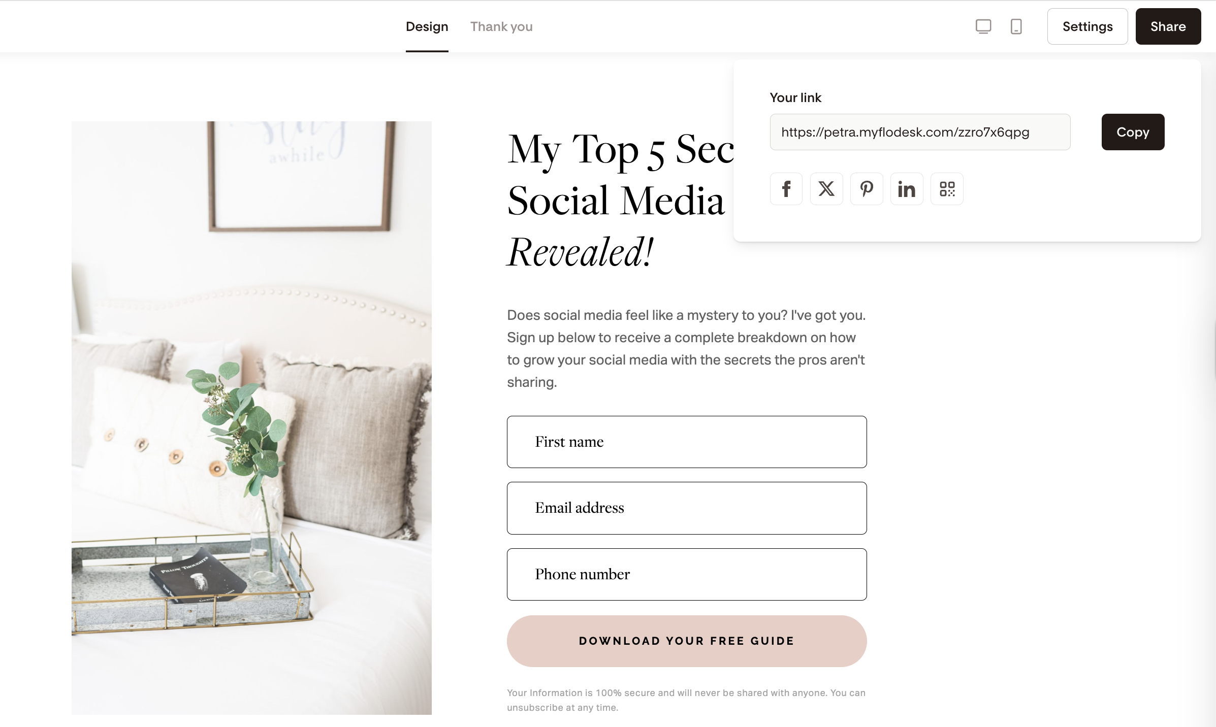 These forms are hosted by Flodesk and automatically generate a unique shareable URL.