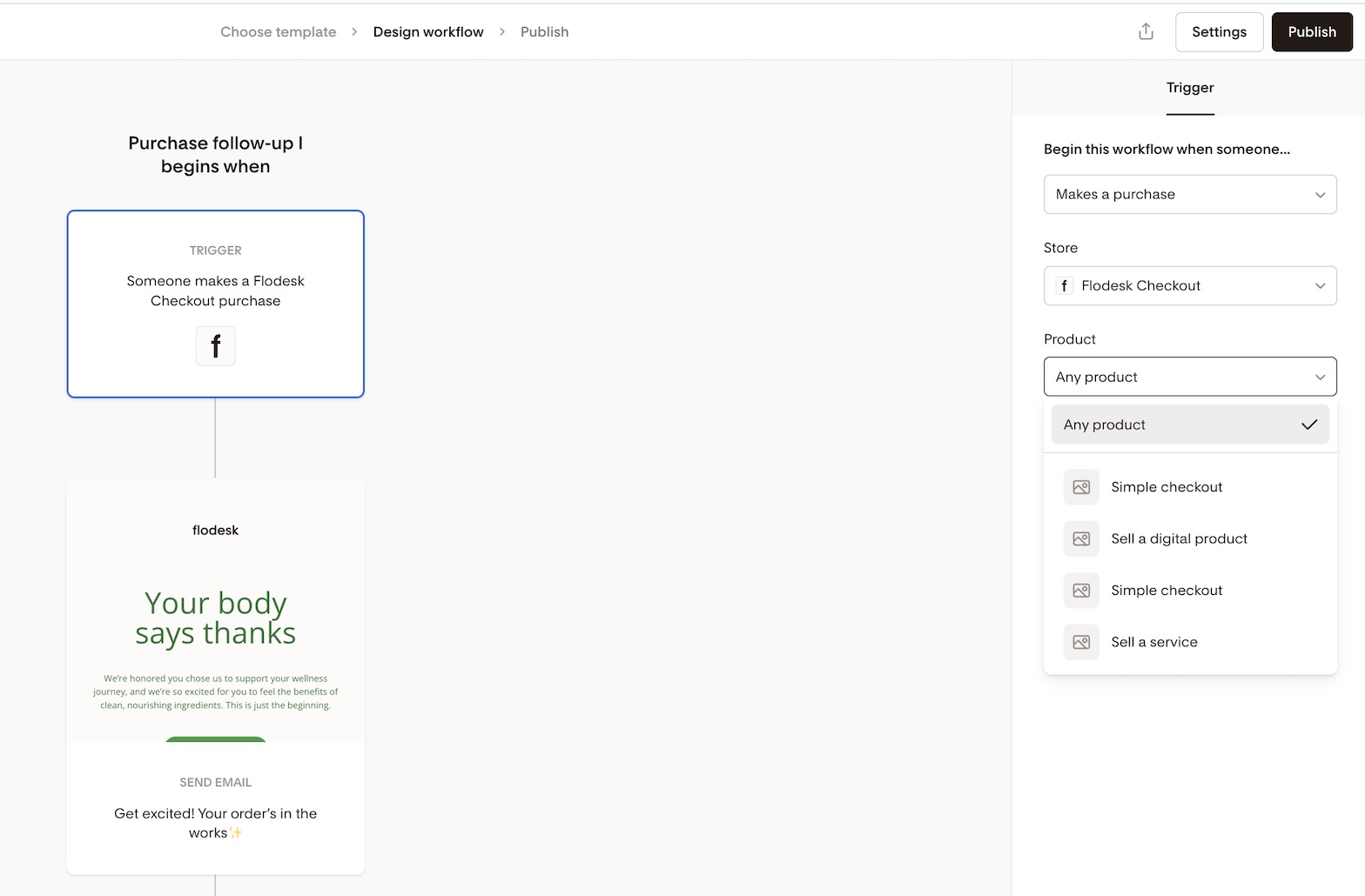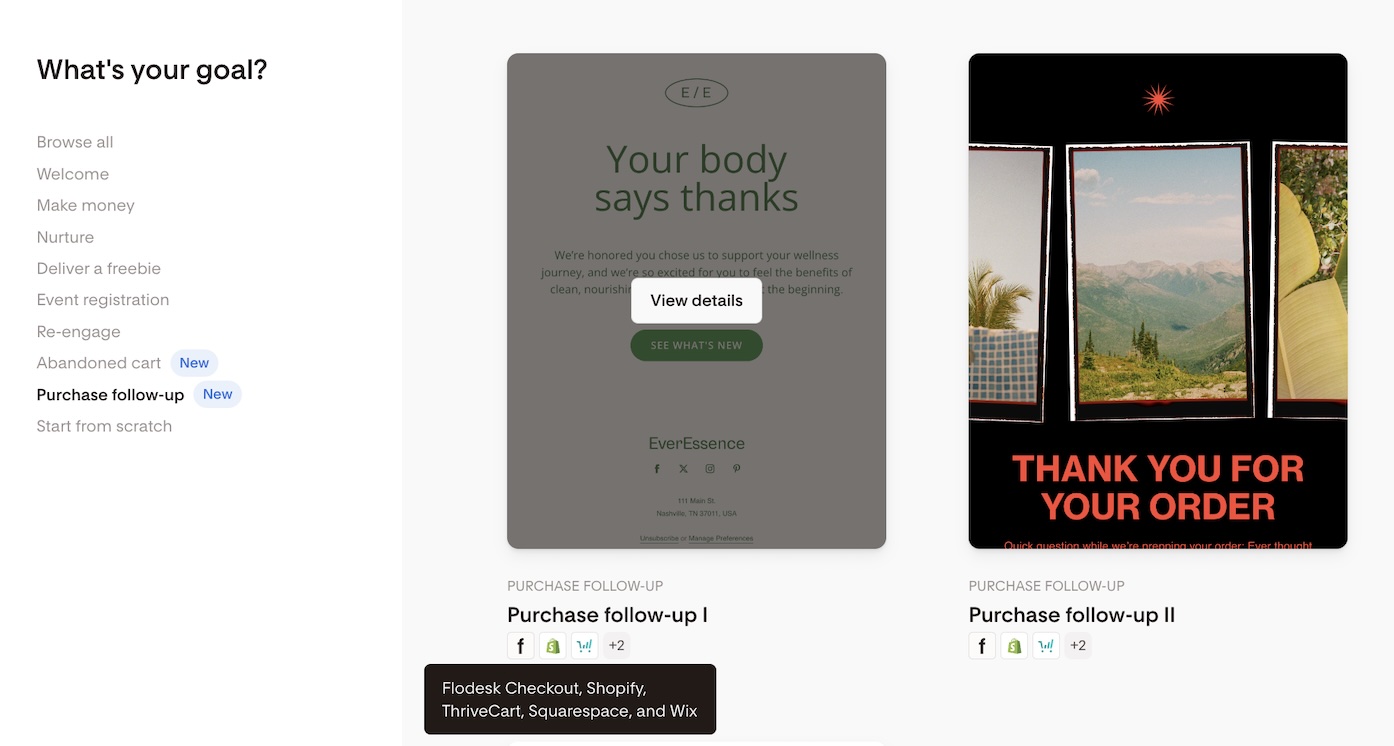 Post-purchase workflows in Flodesk help you automatically follow up with customers after a purchase is completed. These workflows can be used to request reviews, cross-sell products, or build long-term customer relationships.