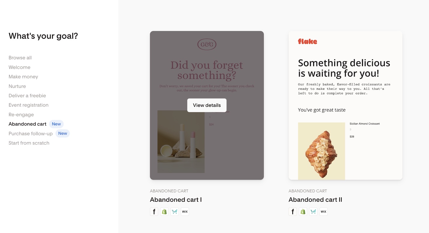 Abandoned cart workflows in Flodesk automatically send targeted emails to customers who start to purchase a product but don't complete it in Flodesk Checkout or a connected Shopify store, Wix store or ThriveCart.