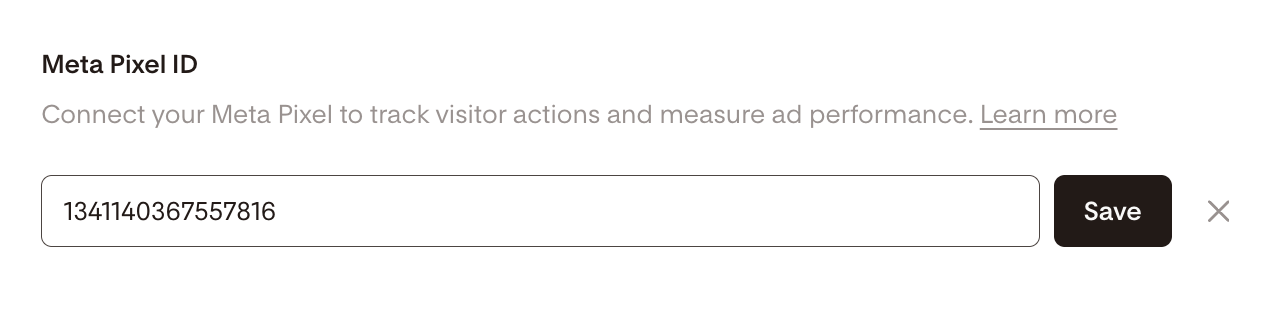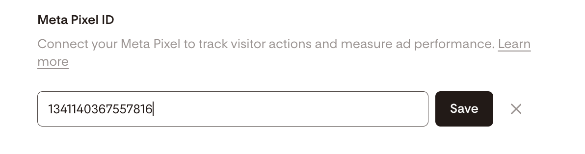 Find the Meta Pixel ID field, click the pencil icon to edit it and enter your Meta Pixel ID. Save and publish.