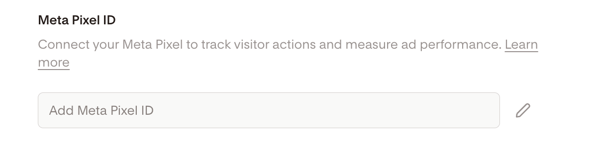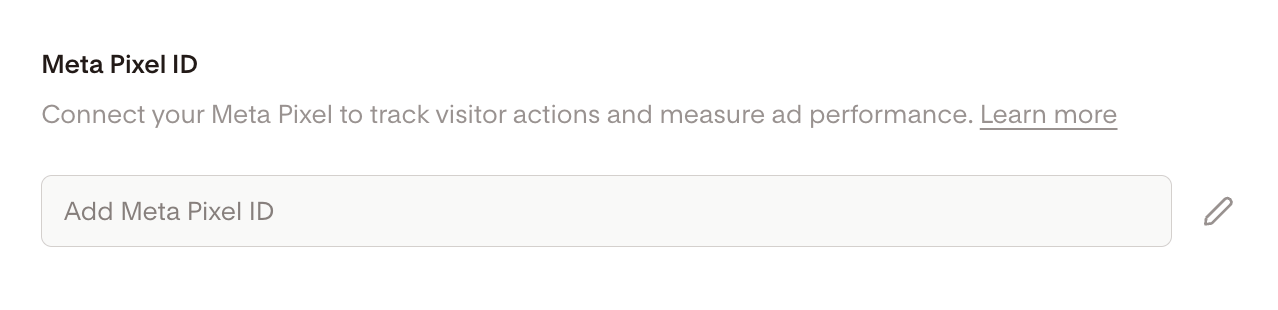 In Settings, find the Meta Pixel ID field, click the pencil icon to edit it and enter your Meta Pixel ID.