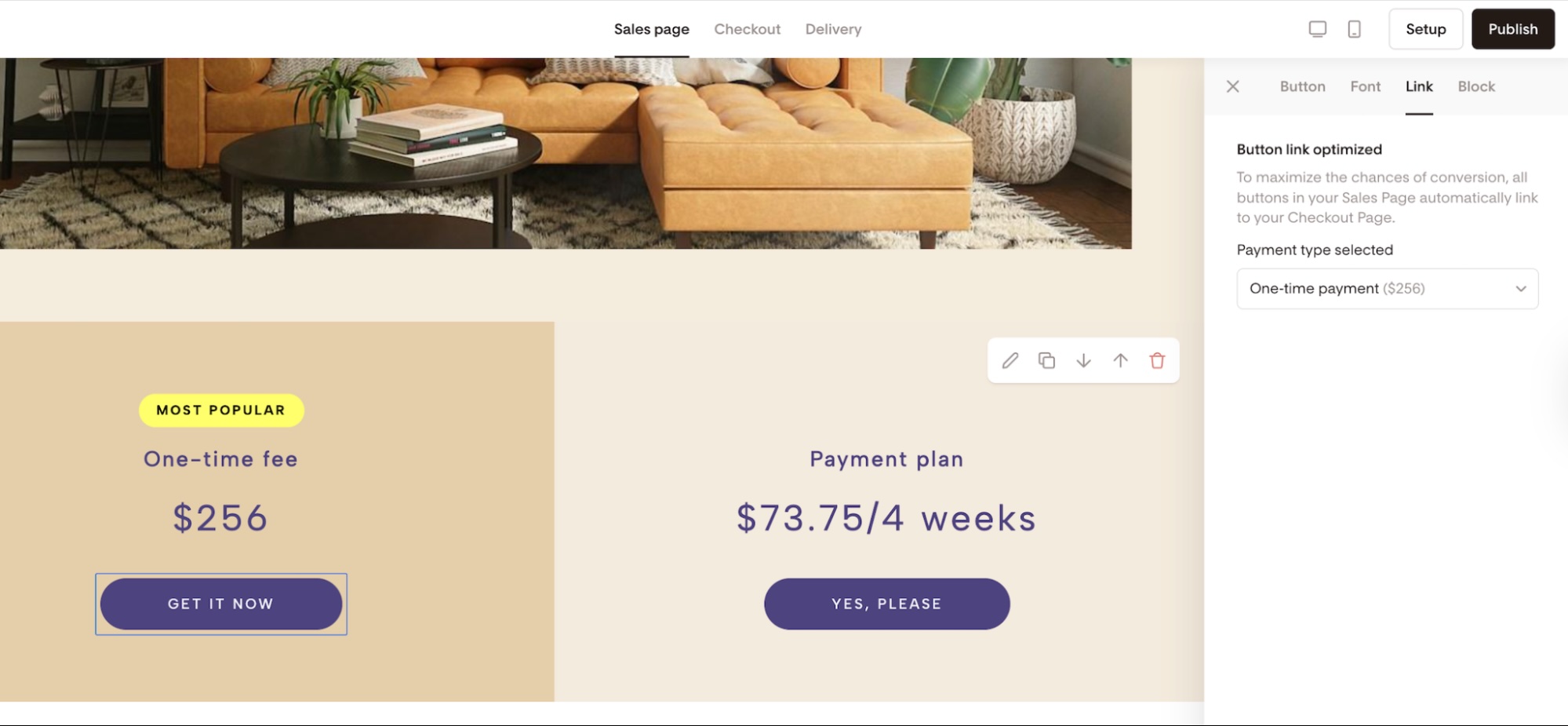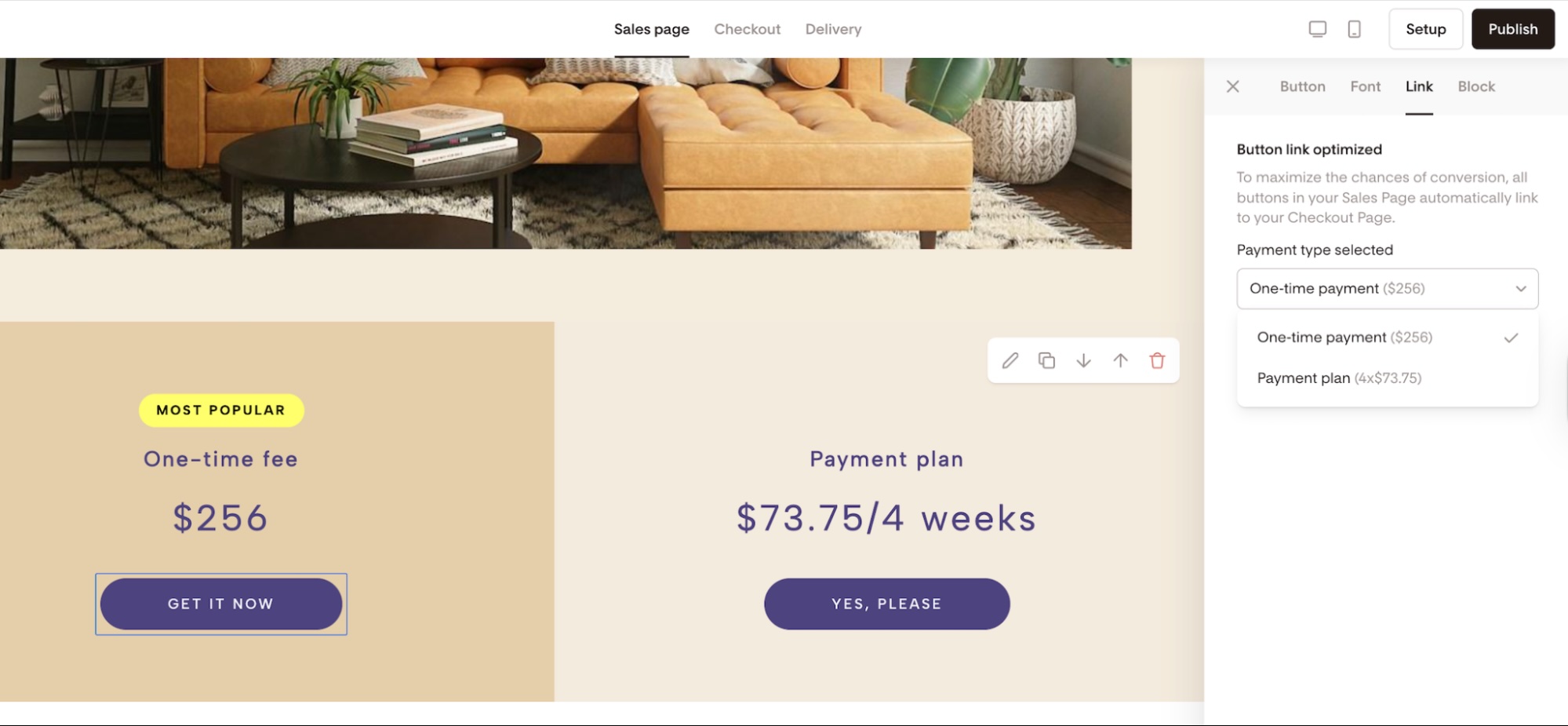 Once everything looks good, publish your Checkout so your changes become public and start selling with payment plans.